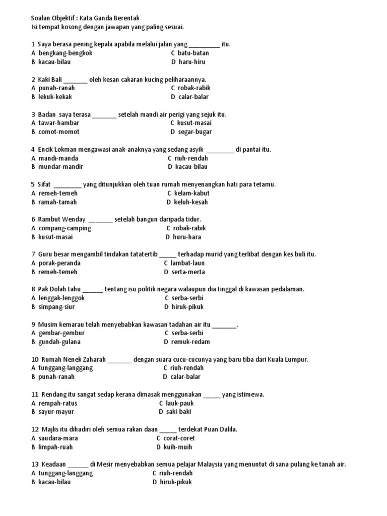 40 Soalan Latih Tubi Tatabahasa Kata Ganda Kata Health And Fitness Articles 40th
